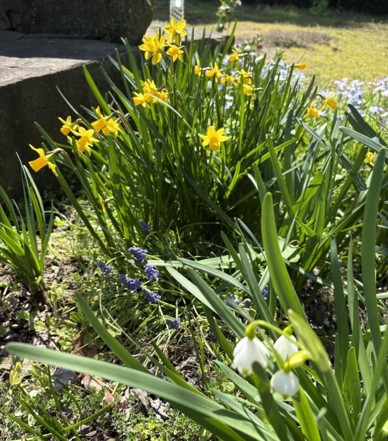 霊園の花壇のお花も一気に賑やかになってきました。スイセンやらスズランやらムスカリやらクリスマスローズやら色々。